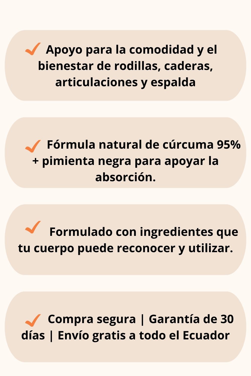 ⚡ Bienestar natural La cúrcuma con extracto estandarizado y pimienta negra apoyan una respuesta inflamatoria equilibrada