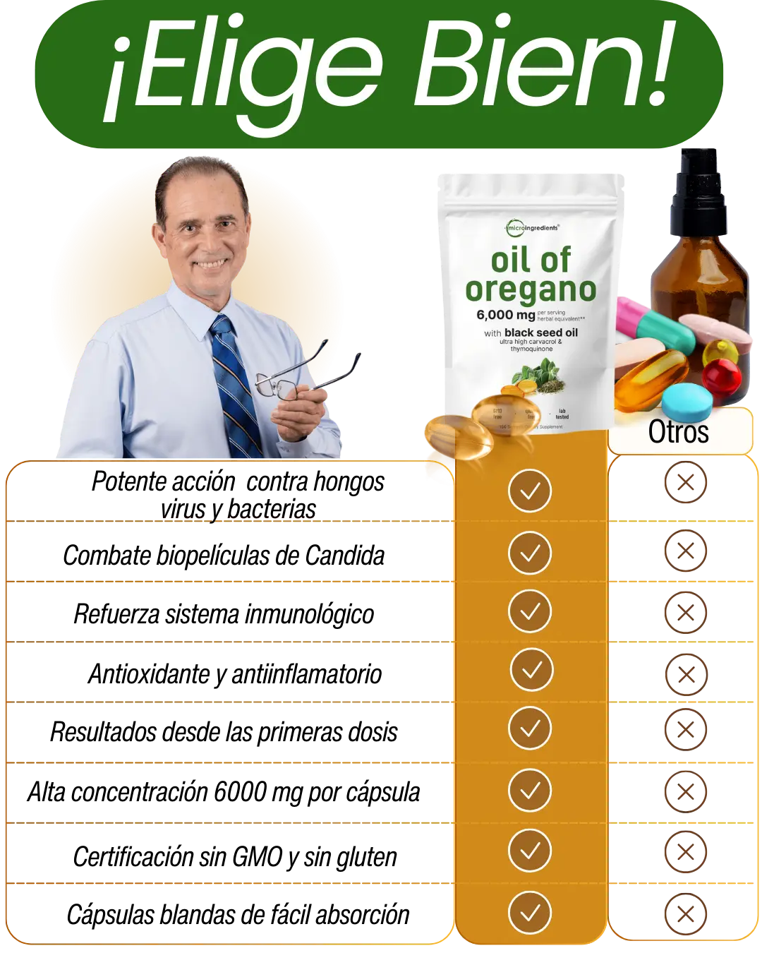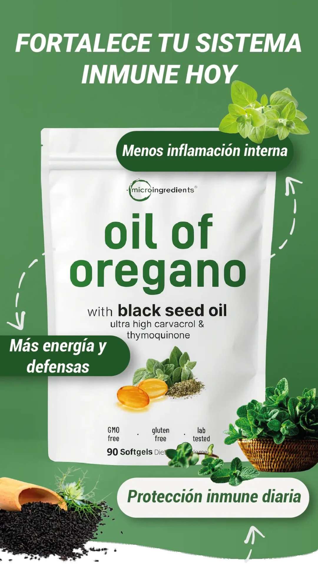 Esta potente mezcla de aceite de orégano y aceite de semilla negra ayuda a combatir el crecimiento excesivo de cándida, favorece el equilibrio intestinal y reduce síntomas como la fatiga, la hinchazón y la confusión mental para que pueda volver a sentirse como usted mismo.