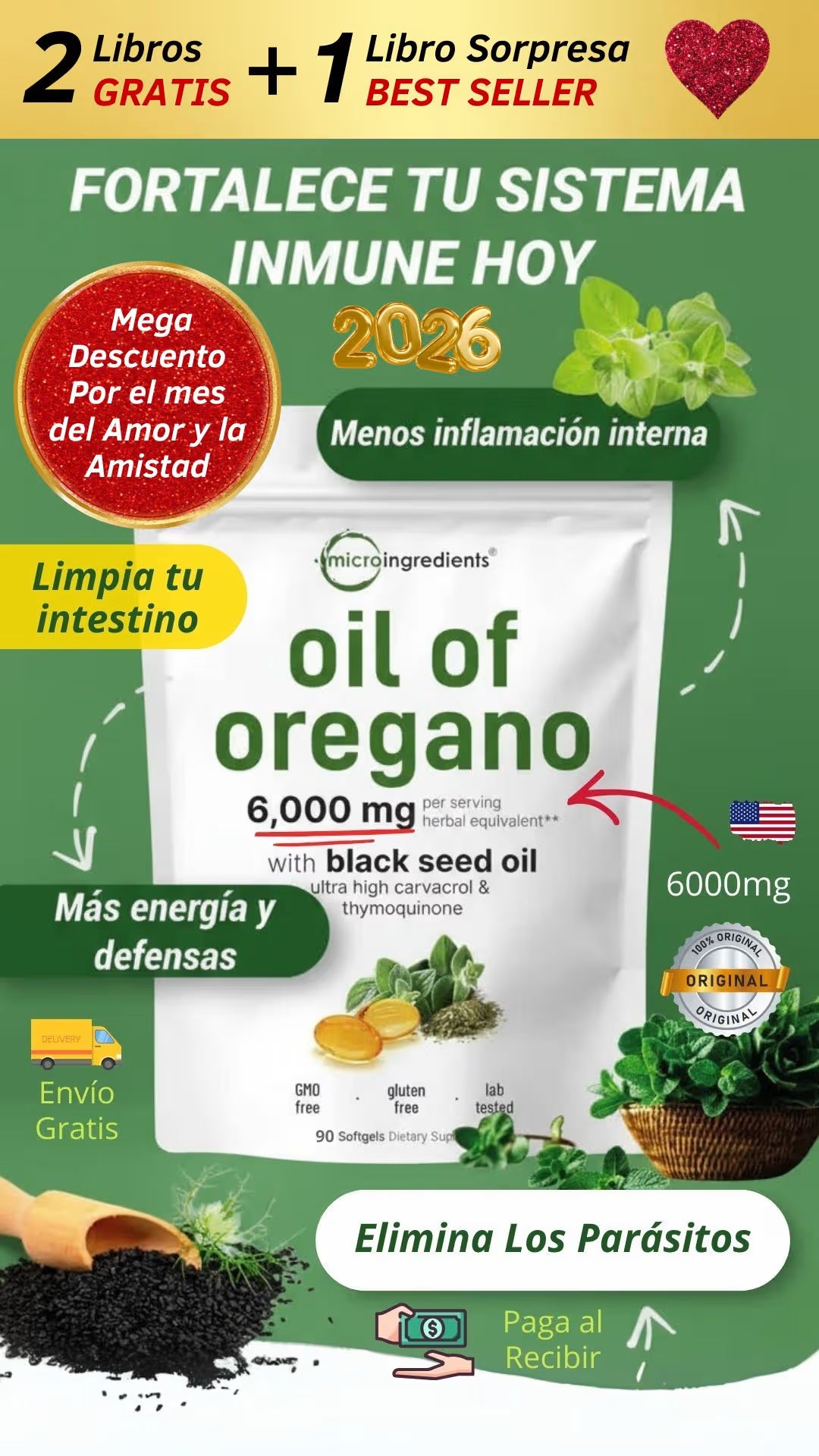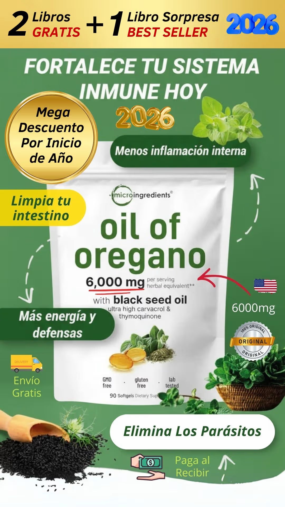🛡️ Refuerza tus defensas: Protege tu cuerpo de virus, bacterias y hongos con el poder natural del orégano y la semilla negra.