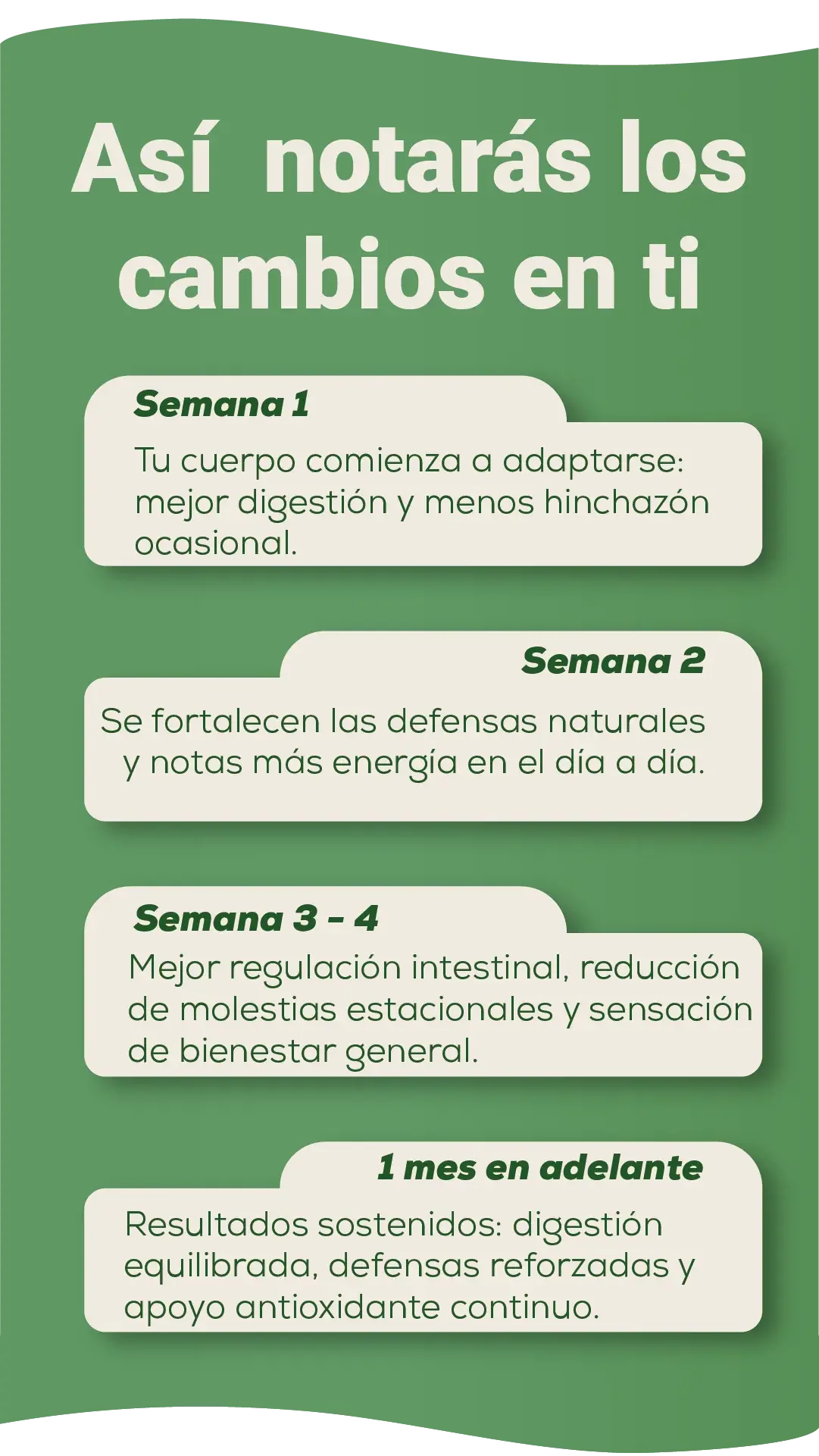 Ya no más antibióticos Estaba cansada de tomar medicinas que solo aliviaban por unos días. Este suplemento me ayudó a romper ese ciclo. Me siento más equilibrada, con menos molestias y más energía.